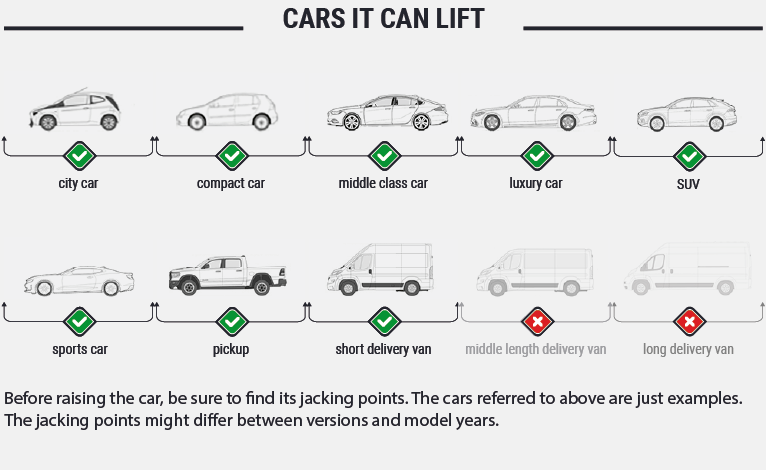 Ce pont voiture est équipé de bras symétriques et télescopiques qui peuvent se déplier de 800mm à 1220mm, idéal pour soulever un grand nombre de véhicule
